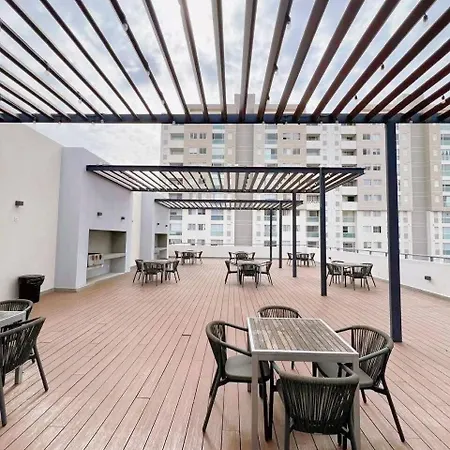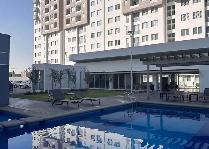 Departamento Moderno Tres Lagos - Smart Access & Wifi Guadalajara apartment is located within a 10-minute drive of the huge Plaza de la Liberacion and 3.7 km from the Alcalde Park. Onsite luxuries include a plunge pool ensuring guests relaxation during their stay.